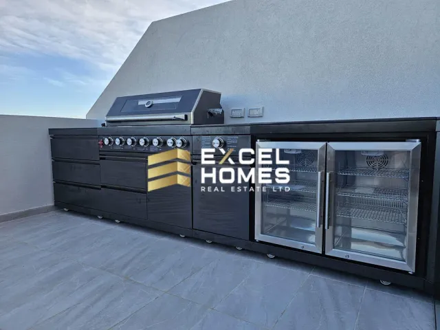 Luksuriøs 1-soveværelse plus kontorpenthouse i Qormi, Malta Ejendomsoversigt Oplev højdepunktet af luksusliv i dette eksklusive 1-soveværelse plus kontorpenthouse, beliggende i Qormis fredelige udkant på Malta. Denne designerindrettede og fuldt møblerede bolig tilbyder en harmonisk blanding af moderne elegance og uovertruffen komfort. Funktioner og faciliteter Hovedsoveværelse: Rummeligt master suite med eget badeværelse og 75-tommers Samsung TV. Åben planløsning: Stor køkken-, stue- og spiseområde fuldt udstyret med topmoderne Beko-apparater og en 85-tommers Samsung TV – perfekt til underholdning og afslapning. Kontor: Alsidigt rum, der i øjeblikket bruges som opbevaringsrum, ideelt til hjemmekontor eller ekstra soveværelse. Vaskerum: Bekvemt placeret bagterrasse omdannet til et stort vaskerum. Frontterrasse: Stor og indbydende terrasse designet til udendørs liv med: - Luksuriøst udendørskøkken - Jacuzzi til seks personer af højeste kvalitet - Markise til beskyttelse mod sol og vintervejr Yderligere højdepunkter Næsten ubrugt: Dette penthouse har set minimal brug, hvilket sikrer, at alle møbler og apparater er i perfekt stand. Fuldt møbleret: Sælges som det er, med alle højklassede møbler og apparater inkluderet. Beliggenhed Nestlet i Qormis rolige udkant tilbyder dette penthouse en fredelig tilflugtssted, mens den kun ligger en kort køretur væk fra den pulserende bymidte, hvilket sikrer bekvemmelighed og adgang til alle nødvendige faciliteter og serviceydelser. Ca. 110 kvm - Ejendomsret - Elevator Gå ikke glip af muligheden for at eje dette luksuriøse, fuldt møblerede penthouse, der perfekt kombinerer sofistikation og komfort. Lev luksuslivet i Qormi, Malta!