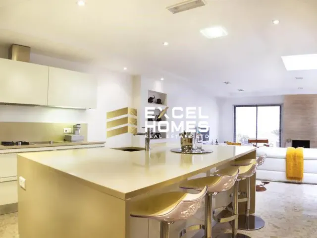 Unique and very well finished Penthouse situated in the most sought after town of Sliema called Tigne.The Penthouse comprises of a hallway that leads to the dining area that is separated from the fully fitted kitchen and breakfast area with a dividing feature wall, leading to the lounge area fitted with a fireplace which indulges itself with lots of natural light through the skylight and a large terrace where one could sit back and relax whilst enjoying superb views of Valletta and Manoel Island. On the other side of this luxurious Penthouse, one can find the two spacious double bedrooms, of which the master bedroom has a en -suite bathroom which boasts natural light coming through the skylight. Both bedrooms lead to the large terraces and enjoy sea views, a third bedroom that can be turned into a study, a guest cloakroom and a guest bathroom.