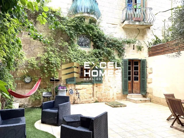 Expertly converted House of Character set within a charming Maltese traditional pjazzetta. Upon entry, the property welcomes you with a wide 29 sqm entrance hall, easily adaptable into a spacious living area, leading to a comfortable sitting room with a wood-burning fireplace, a well-appointed kitchen and dining area, three double bedrooms, three bathrooms, and a washroom at roof level. Complementing this beautiful home is a 50 sqm private back garden, ideal for entertaining and outdoor gatherings, as well as solar panels for improved energy efficiency. Offered freehold, this property seamlessly blends traditional charm with modern comfort.