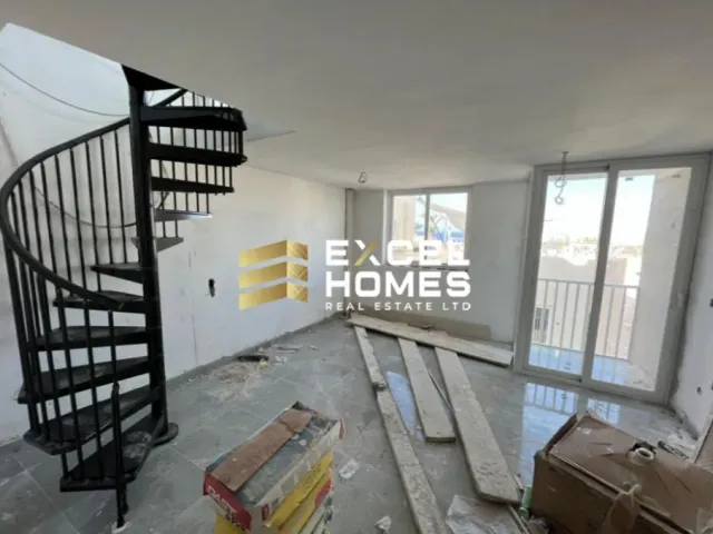 Pentaċċju ta’ uffiċċju duplex f’Sliema b’terrazzin u spazju ta’ fuq, b’erja totali ta’ 60 metru kwadru. Lest ġdid fuq it-9 sular minn 10. Il-proprjetà hija freehold.