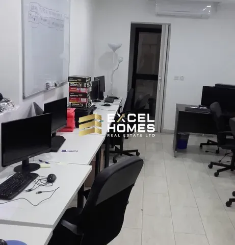Первый этаж, офисное помещение 60 квадратных метров в заливе Спинола, полностью кондиционируемое, оборудовано мини-кухней, санузлом с душем и меблировано.