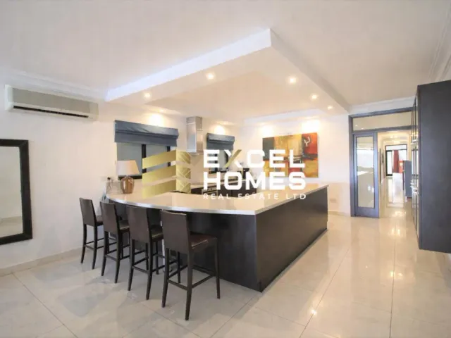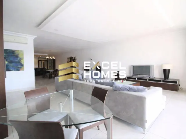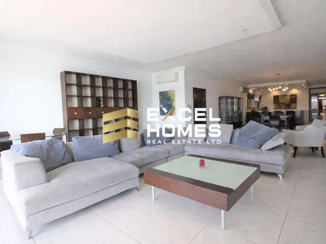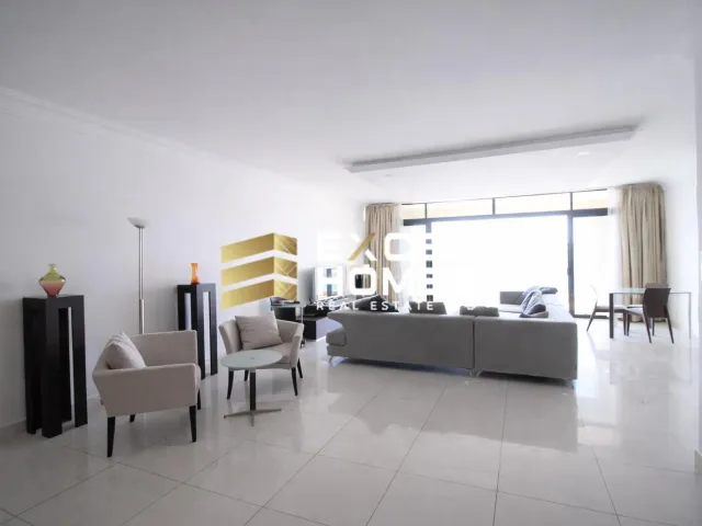 This spacious 7th-floor apartment in Sliema, measuring approximately 282 sqm, features three bedrooms and three bathrooms, offering ample comfort and privacy. The property boasts a large front terrace with open views over Gzira and Valletta, as well as a back terrace and a convenient box room for extra storage. It also includes one car parking space and comes fully furnished, making it ready for immediate occupancy.