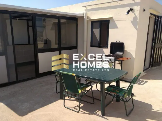 It is a first floor maisonette in a block of 2. The property comprises 3-bedrooms (2 with ACs). Theres a double bed and 2 single beds, and in the 3rd bedroom theres a single bed with a wardrobe etc. The property has 2 bathrooms one of which is ensuite, 2 boxrooms, study, internal yard, back terrace, washroom (with washing machine), front balcony with country views and ownership of a roof with a BBQ area and BBQ. Complimenting this is a large kitchen/dining/living room. From the roof and front balcony the property enjoys stunning views of the Girgenti and Verdala Palaces, Tal-Virtu and the Mdina Cathedral since it faces an ODZ area.