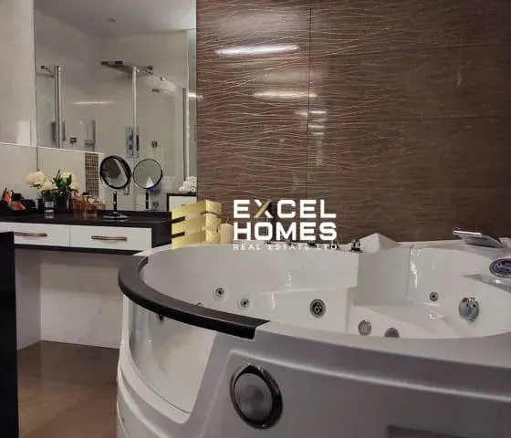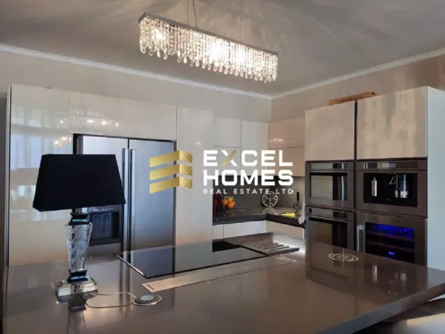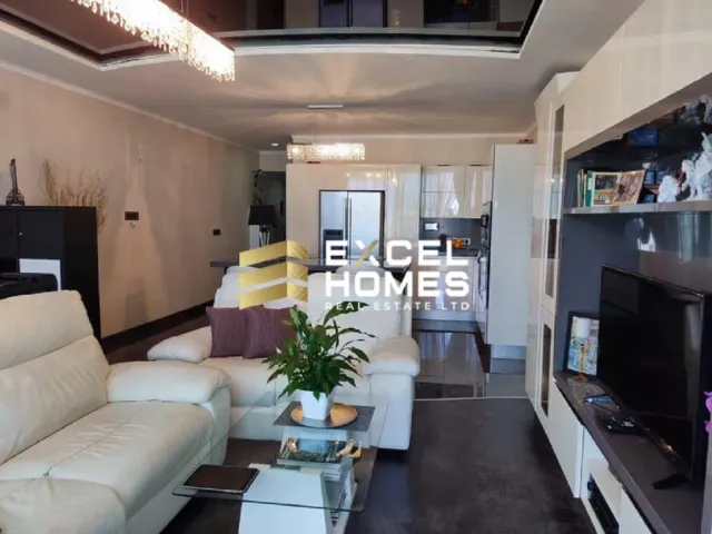 A most luxuriously finished and furnished apartment to an exceeding level having magnificent sea and country views from its own terrace. Squarish layout comes complete with highest quality Fino furniture, cork wooden flooring having controlled underfloor heating and air-conditioning throughout. A large open plan fitted kitchen / dining / living greats one upon entrance leading to three bedrooms. All having own ensuite. Masters bedroom comes with walk-in and ensuite having jacuzzi bath with hi-fi tv for some relaxing time. A guest bathroom having enclosed three solar heaters. Such standards include; LeGrand switches, control panels and modules, Bertolotto brand doors, Swarovski door handles and chandeliers, Fino branded furniture and appliances all round and many more! An optional interconnected two car garage is also available. One must appreciate the finishes and quality of this apartment; hence we strongly recommend a viewing!