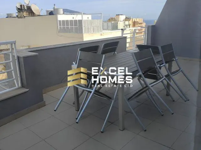 A highly finished penthouse for long let in Mosta. It consists of kitchen/dining/living, bedroom and main bathroom. 2 terraces with views. Fully air conditioned and served with lift