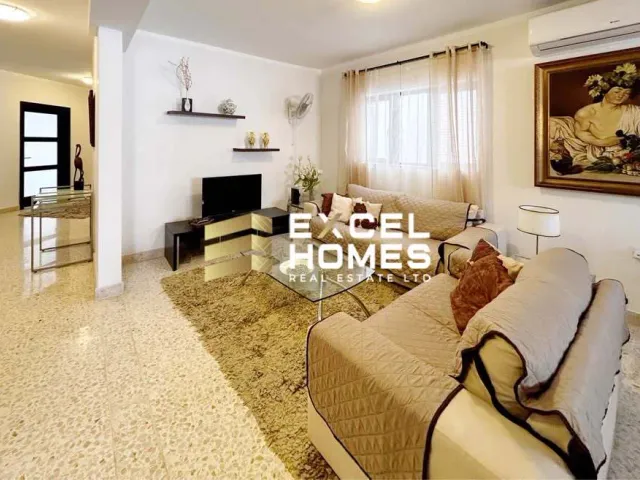 For rent in Zebbug, Malta: a very spacious, well-finished first-floor apartment in a quiet residential area, fully air-conditioned and served by a lift. The property boasts an expansive open-plan kitchen/living/dining area, four double bedrooms, two bathrooms, a study corner and front and back balconies, all bathed in abundant natural lightan outstanding must-see family home.