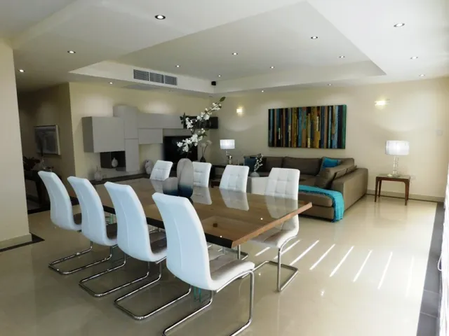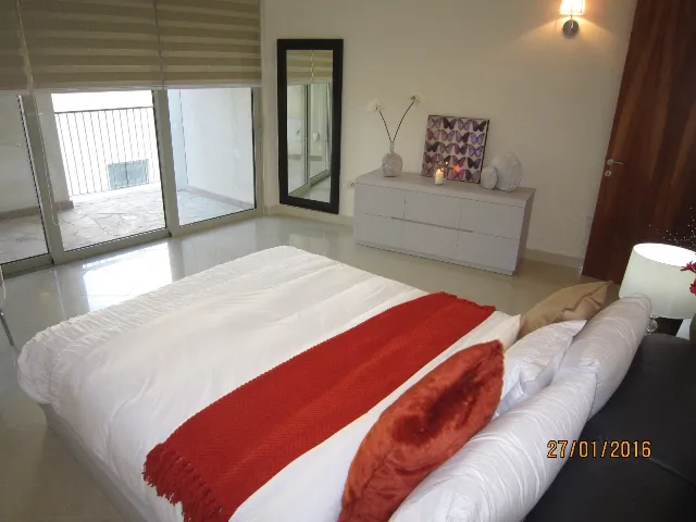 Sliema – A bright, stylish APARTMENT, finished to the highest standards, is now available for rent in Tigne Point. The accommodation comprises an entrance hall which leads to a large, open plan kitchen/living/dining area (fully equipped with modern appliances), 3 double bedrooms (master with en suite), a back balcony and a front terrace commanding direct sea-views.