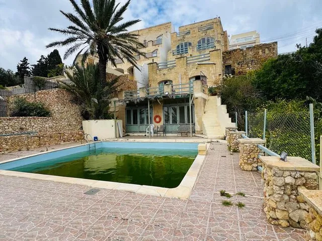Xaghra – In one of the most charming places of Gozo, enjoying fabulous valley views of Xaghra, a freehold 7-bedroom farmhouse is available for sale. Split on 4 levels, the accommodation comprises a well-equipped kitchenette, 3 bedrooms (master with en suite), a storage room and a guest bathroom leading out onto a large outdoor area consisting of a large swimming pool, a lovely courtyard, a bbq area and a deck area on ground floor level; a bright open plan, fully fitted kitchen/living/breakfast area leading out to a large well-sized balcony commanding wide and imposing green Gozitan views, a further bedroom (with en suite) on the first-floor level; 3 bedrooms (all with en suite; master bedroom with a private terrace too) on the second-floor level; a lovely roof terrace commanding bright and scenic views at the upper-floor level. Must be viewed to be appreciated!
