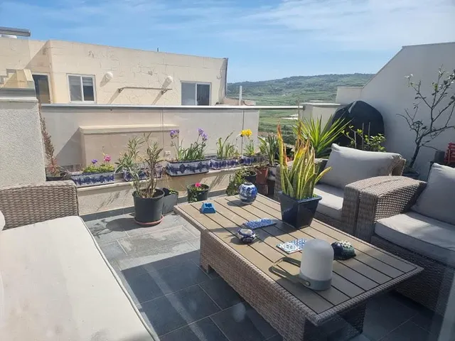 A truly unique freehold two-bedroom apartment located in the sought-after area of Żebbiegħ. This bright and spacious property boasts a larger-than-usual open-plan layout, seamlessly combining the kitchen, living, and dining areas into a welcoming and airy space. Both bedrooms are generously sized and feature walk-in wardrobes, with the main bedroom enjoying the added comfort of a private en-suite. The apartment is designed to maximize natural light throughout, creating a warm and inviting atmosphere. One of the standout features of this home is its outdoor space, offering both front and back terraces with open side views—perfect for relaxing or entertaining. The property is being sold fully furnished, making it ready to move into. An optional lock-up garage is also available, providing added convenience and storage. A rare opportunity to own a distinctive, well-appointed freehold home in a peaceful yet well-connected location.