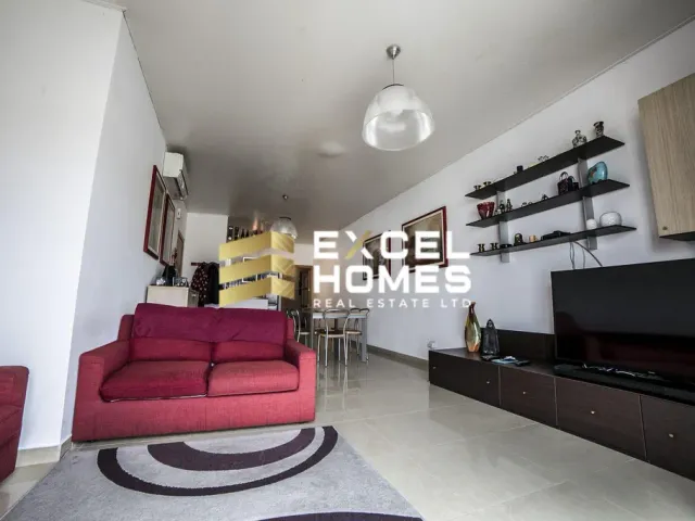 For sale in Swieqi, a residential area a few steps from St. Julians, second floor apartment of 130 sq. m. Ideal for couples and families. The apartment consists of a large and bright living room with equipped kitchen (55 sq.m.), with a large window overlooking the balcony and three bedrooms as follows: a single bedroom and two double bedrooms, one with en suite bathroom and a small balcony, a main bathroom with tub and bidet and a laundry room equipped with a washing machine and a small sink. All bedrooms and bathrooms have a window which makes them very bright. The apartment is located in a condominium of 6 apartments with lift and is equipped with a private garage. All rooms are equipped with air conditioning / heat pump. The apartment enjoys a panoramic view and the beach is only 350 meters away. Fully furnished. Immediately habitable, without renovations or whitewashing / painting. An optional garage is also available at Eur 45,000.