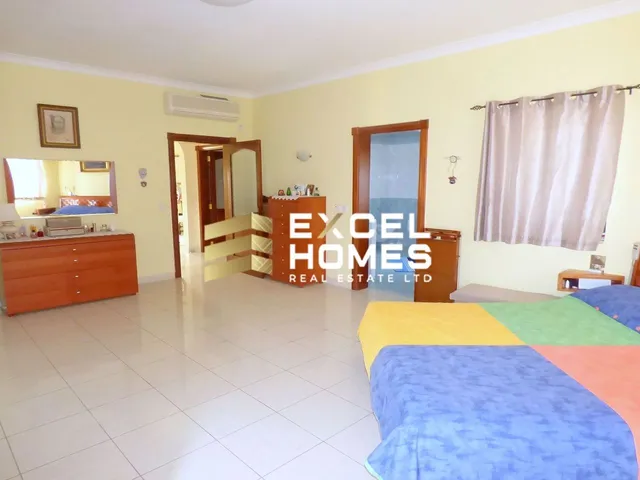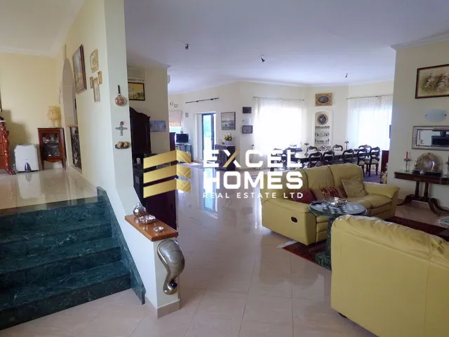 A large Fully Detached Bungalow, set on an area of around 1600 sq.m having spacious accommodation throughout and enjoying amazing , unobstruced sea views. Accomodation comprises of a welcoming hall leading to a sitting/dining, fitted kitchen/breakfast, study guest toilet, 3 bedrooms, 2 bathrooms, laundry, a 3 bedroomed flat, fully equipped with its own entrance and terraces, a further 2 bedroomed flat, games room, swimming pool, deck area, bbq area, garden, drive in and also an underlying 20 car garage.